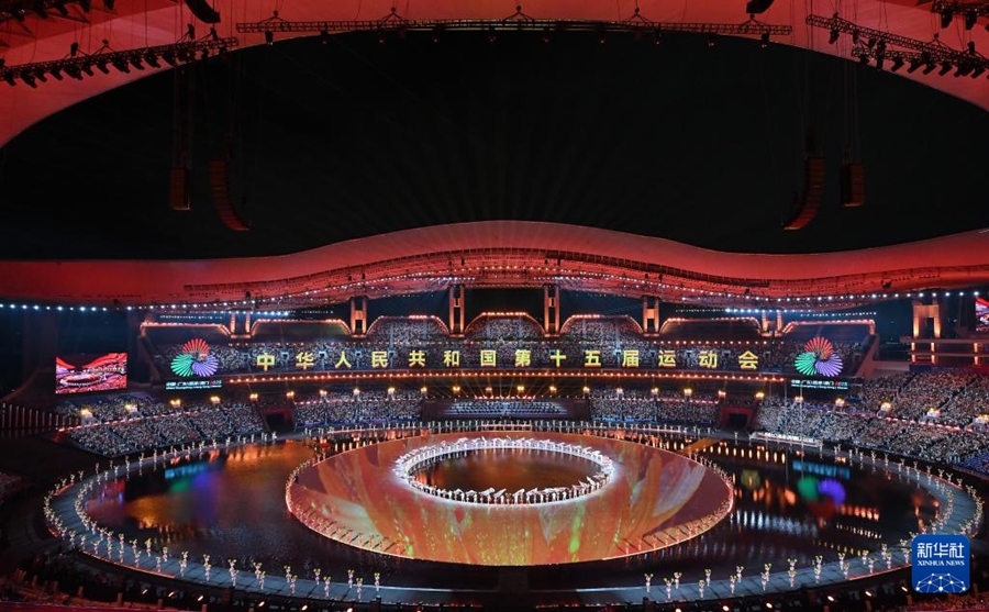 第15回全国運動会(全運会)の開会式が9日夜、広東省広州市にある広東オリンピックスポーツセンターにおいて、心を揺さぶられる壮麗な音楽の中で開催された。まず方形に並んだ16人の旗手が全運会の会旗と第15回全運会の会旗を掲げて入場し、続いて37の代表団の選手代表たちが入場した。彼らはそれぞれ省・自治区・直轄市と、香港特別行政区、澳門(マカオ)特別行政区、新疆生産建設兵団、および3つの業界体育協会の代表となる。