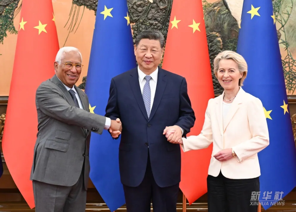 習近平国家主席は24日午前、第25回中国EU首脳会議のために中国を訪問しているコスタ欧州理事会議長(EU大統領)及びフォンデアライエン欧州委員会委員長と北京の人民大会堂で会談した。新華社が伝えた。