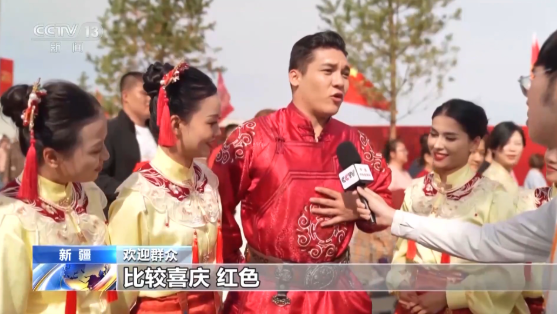 歓迎の列の中にいたモンゴル族出身の男性は、記者に自身が身に着けている服を指さしながら、「この服はモンゴル族の伝統衣装で、赤色でとてもめでたいデザインです。先ほど習主席が私たちの前を通過された時、『これはモンゴル族の服だね』と指さして言ってくれました。私たちはとても誇りに思っています」と興奮した顔で話してくれました。