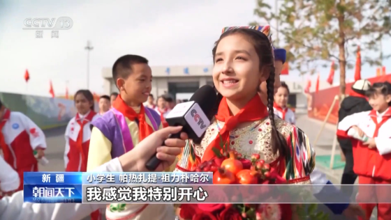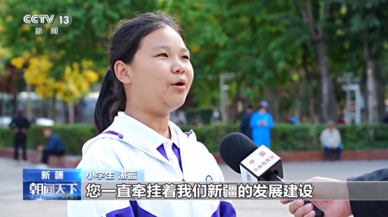 小学生の湛藍さんは、「習主席がずっと新疆の発展と建設に心を砕いていることは、先生や両親からよく聞かされています。新疆の子どもたちの成長もいつも気にかけてくださっているそうです。今、私たちには明るい教室や広い運動場があり、各民族の友達と一緒に楽しく遊び、思う存分学び、とても幸せに暮らしています。このことを習主席にお伝えしたかったのです」と話しました。