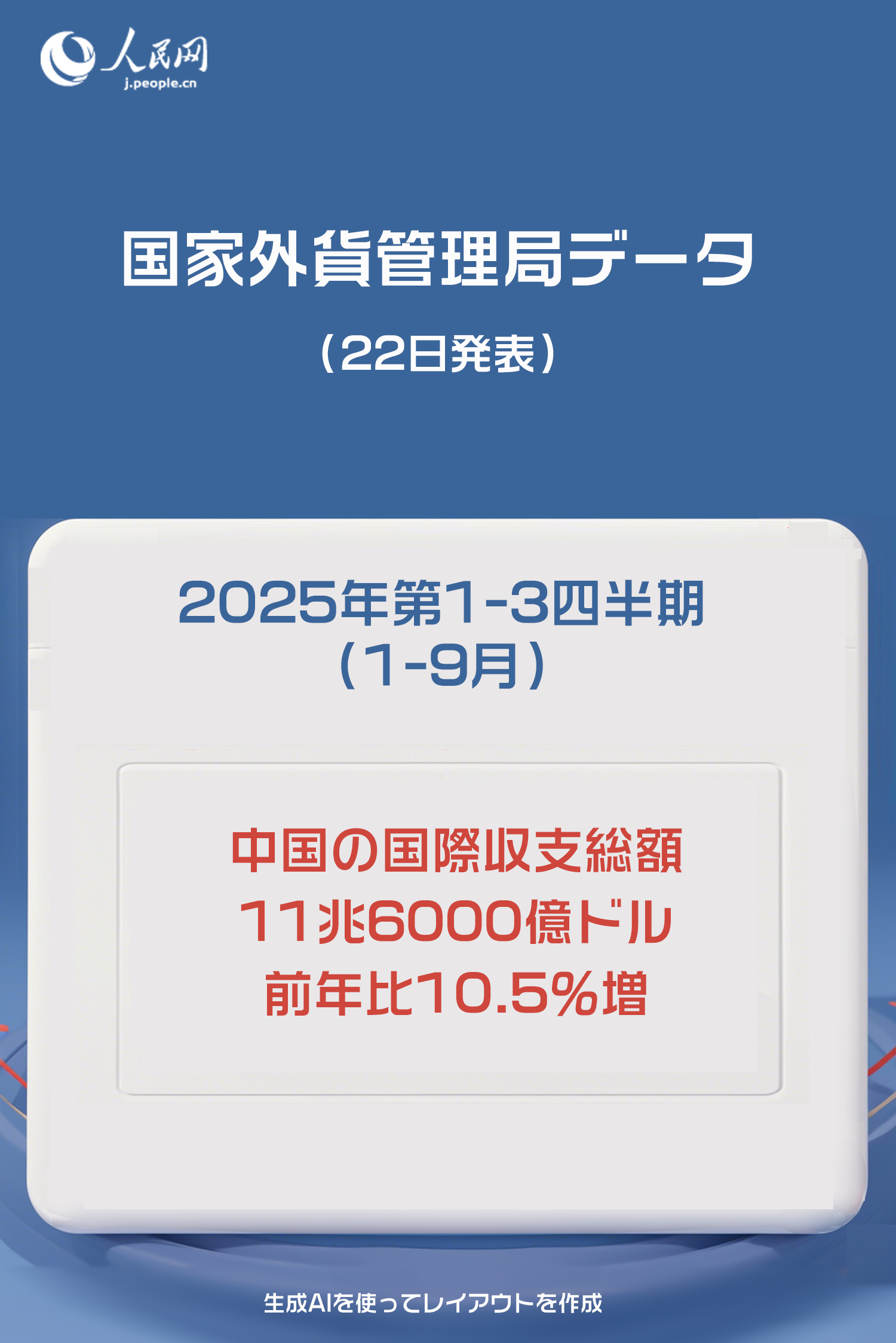 国家外貨管理局が10月22日に発表したデータによると、今年9月には、企業や個人などの非銀行部門による国際収支総額が前月比7%増の1兆3700億ドル(1ドルは約152.2円)に達した。今年第1-3四半期(1-9月)の国際収支総額は前年同期比10.5%増の11兆6000億ドルとなり、同期の過去最高を更新した。