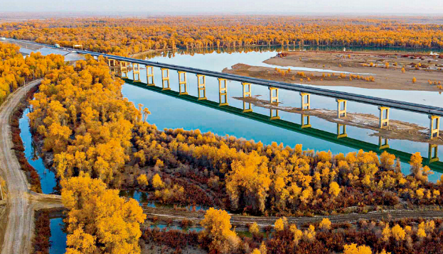 かつて老大川(アクス川下流の重要な支流)の水が途絶えたことで、コヨウ林は大きく減少した。事業チームは38㌔にわたる川の浚渫を行い、アクス川と老大川を連結し、「死の川」に新たな生を吹き込んだ。並行して建設された生態防護道路は管理や保護を容易にしたばかりか、ドゥラン(刀郎)文化観光地とをつなぎ、生態保護と文化観光を兼ね揃えた特色ある回廊をつくった。