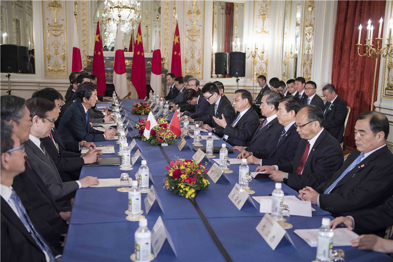 中日首相会談 中日関係の長期安定発展に努力