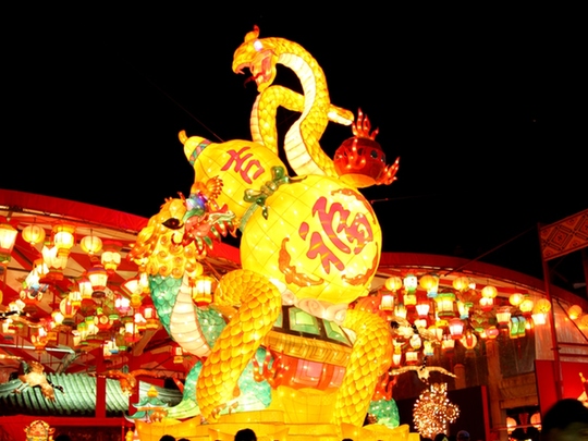 | 今年の干支をかたどったランタンオブジェ「金蛇狂舞」 |
