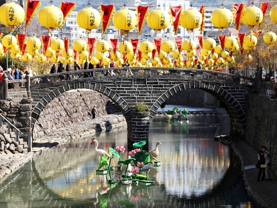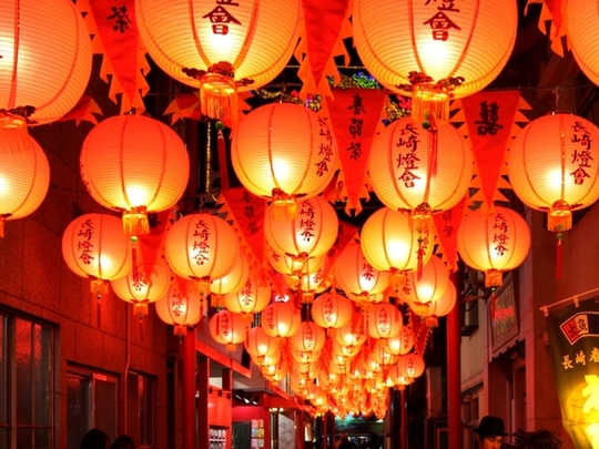 このほど、恒例の「長崎ランタンフェスティバル」が開かれ、春節(旧正月/今年は2月10日)から元宵節(小正月)まで15日間にわたって、新地中華街や市内各所に1万5000個の各種ランタン灯された。