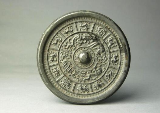 十二支の動物などの絵を円形に配置した隋の「四神十二生肖紋銅鏡」。こうした銅鏡は南北朝時代から唐代初期にかけて流行した