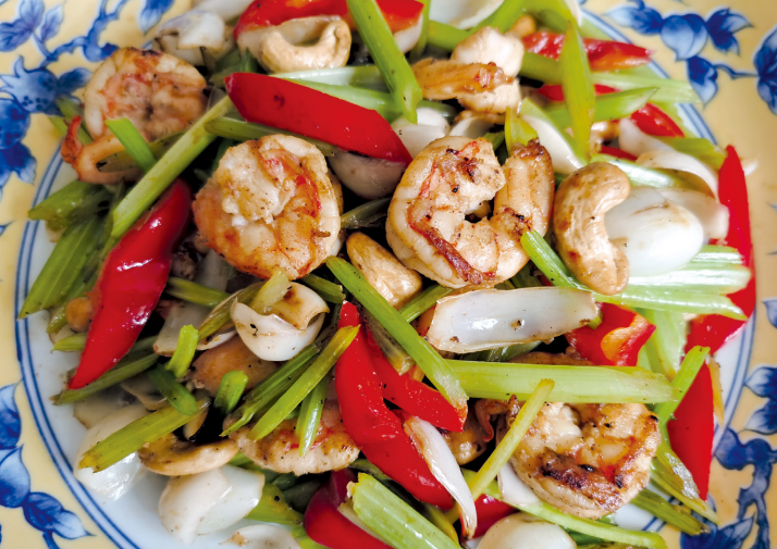 芹菜百合腰果炒蝦仁(季節野菜とエビの炒めもの)